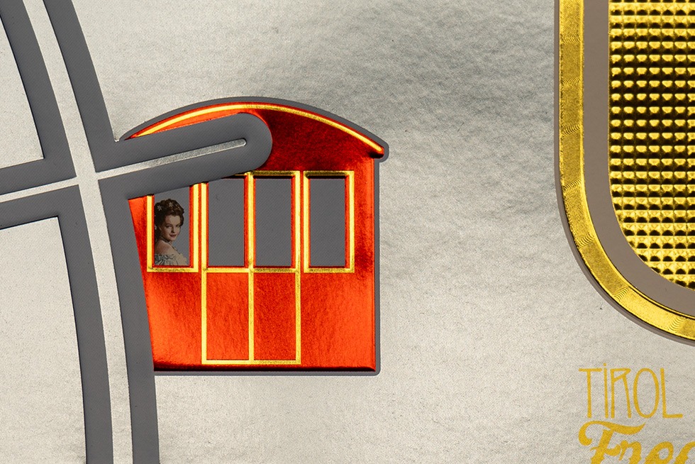 - Elegancia en plata (Hot Stamping): con SILVER LINE® Sails, se crearon acentos brillantes. Elementos icónicos como la flor de Edelweiss y los escudos de armas cobran vida, demostrando que el lujo está en los detalles.