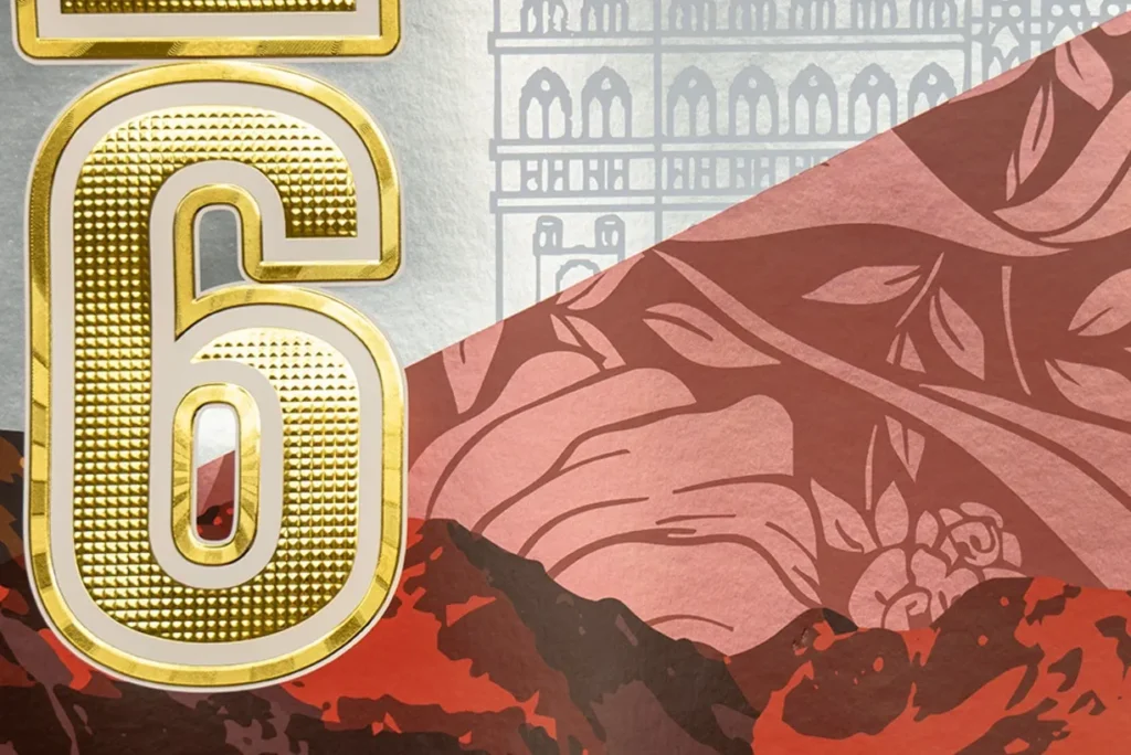 - Estructuras narrativas (Micro-Embossing): utilizando LUXOR® 392 MTS y 385 MTS, se aplicaron micro-relieves en los marcos de las góndolas y el año 2026. Esto demuestra cómo la precisión extrema puede convertir un diseño plano en una experiencia 3D.