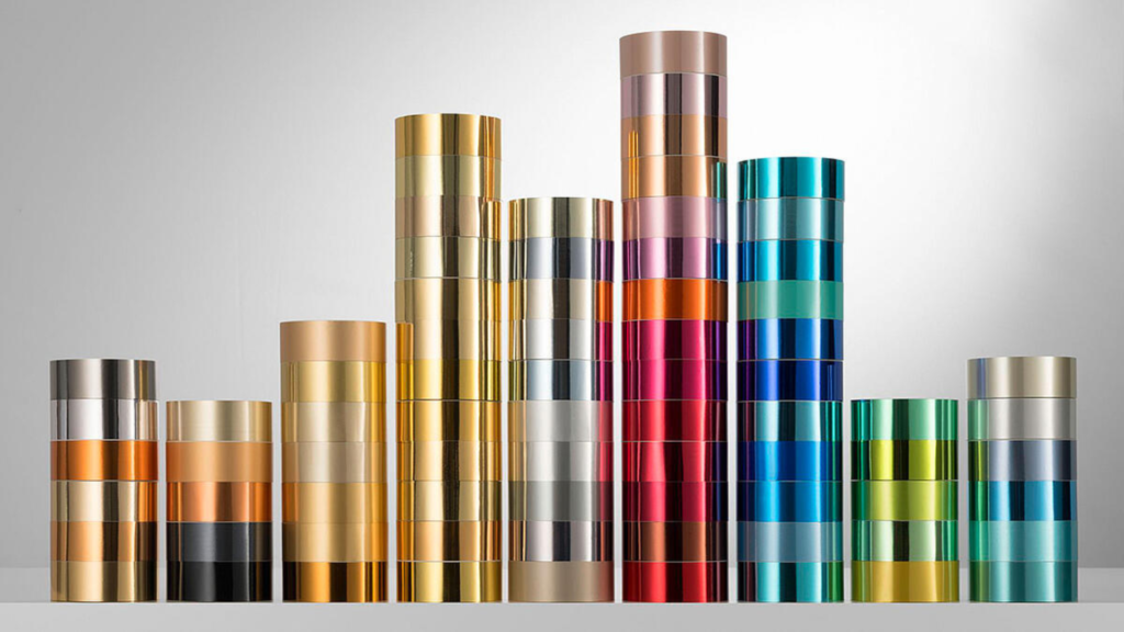 - Insumos y láminas de estampado: foils de alta calidad para hot stamping y cold foil, incluyendo acabados metálicos, holográficos, mates y efectos especiales para todo tipo de sustratos.